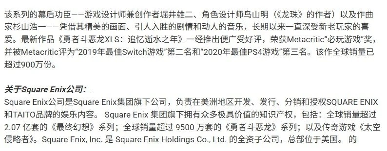 此外,SE还宣布,《勇者斗恶龙》系列的总销量已超过9500万套,较2025年5月的数据增加了100万套。
