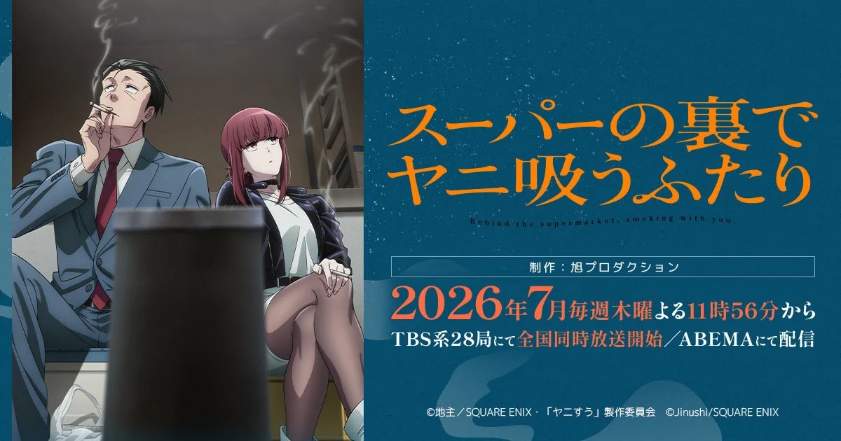 备受期待的恋爱喜剧漫画《躲在超市后门抽烟的两人》的TV动画改编企划,今日(1月16日)传来重磅消息——官方正式宣布,这部主打成年人暧昧日常的作品,将于2026年7月开播,同步释出的还有先导主视觉图,瞬间勾起漫迷们的期待。