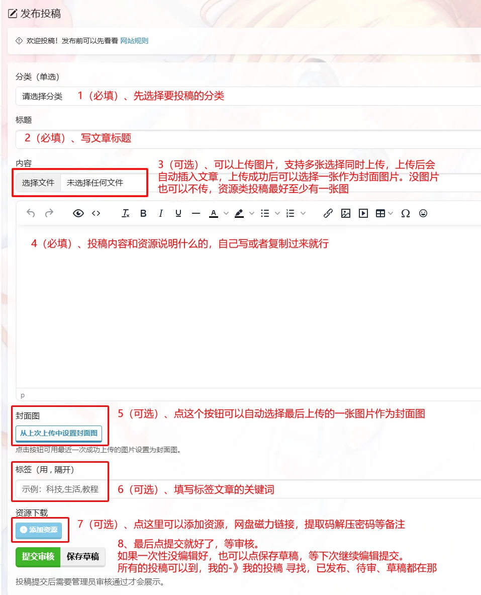 这里主要说明下如何投稿发帖,可能有小伙伴不太了解新站,这是 投稿页面,如果会用的就不用看了