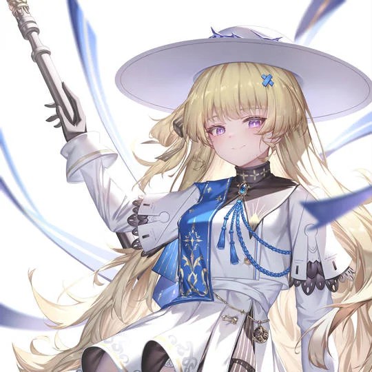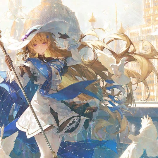 菲比总是戴着一顶洁白的大圆帽,帽檐宽大,帽顶上点缀着一圈蓝色的桂冠。她的金发如阳光般闪耀,紫色的眼眸如紫罗兰般动人。一套以白色为主调的教会短衫与短裙,简洁中不失庄重。胸前镶嵌着一颗黑色宝石,宝石下方垂落着两条蓝色的流苏,随风轻摆,背后则延伸出两条细绳,勾勒出她纤细的腰身。肩上披着一条蓝色绶带,金色的点缀在光线下熠熠生辉。白色的丝袜隐约透出肌肤的细腻光泽,脚上则是一双白色长靴,利落又不失柔美。整体装扮既符合教会的庄重,又透出她独特的个性与活力。