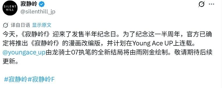 为庆祝《寂静岭f》发布半年,科乐美公司准备了一份惊喜,宣布将推出游戏的改编漫画,具体发布日期尚未公布。