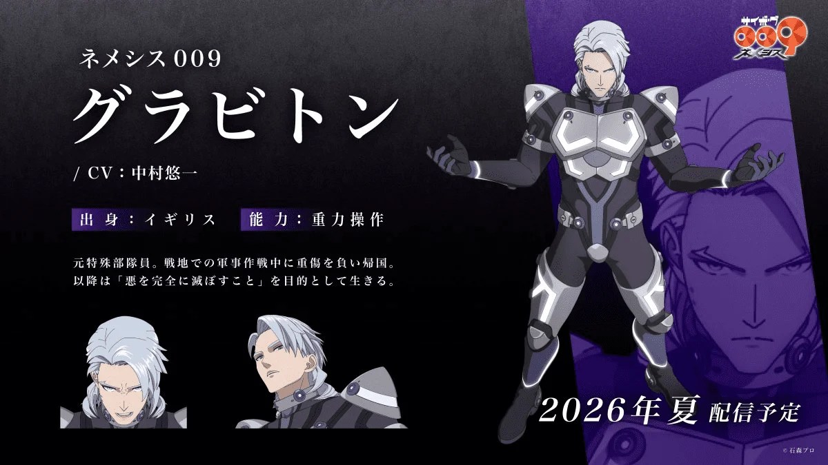 此次公开的视觉图中,搭配“我,就是009。”与“世代交替”的大字标语,整体氛围厚重而肃穆。画面中央,张开双臂的新“009”——Graviton以压倒性姿态登场,冷酷气场扑面而来。其身后隐约可见他所率领的组织“涅墨西斯”,令人不禁好奇这部暌违多年的新作将开启怎样的篇章。